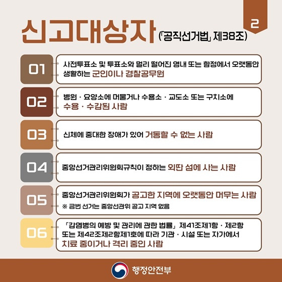 이러한 대상자들은 사전에 신고를 통해 거소투표를 신청할 수 있으며, 신고 이후에는 별도로 투표소를 방문하지 않고도 투표가 가능합니다.