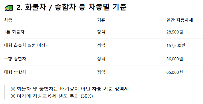 승용차, 화물차, 특수차량 등 유형별로 과세 방식이 다릅니다.