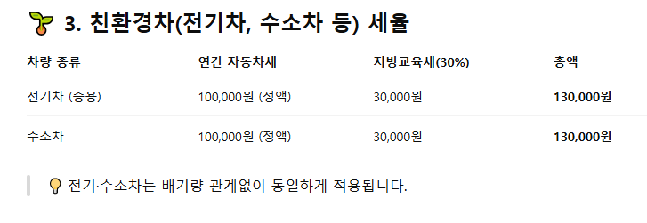 전기차, 수소차, 알코올차, 태양광차 등은 정액 10만원 과세