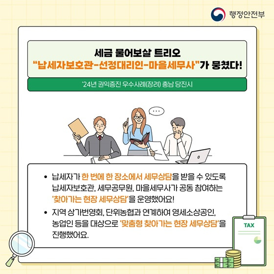 납세자보호관·선정대리인·마을세무사 세 명이 함께