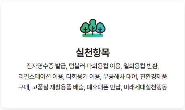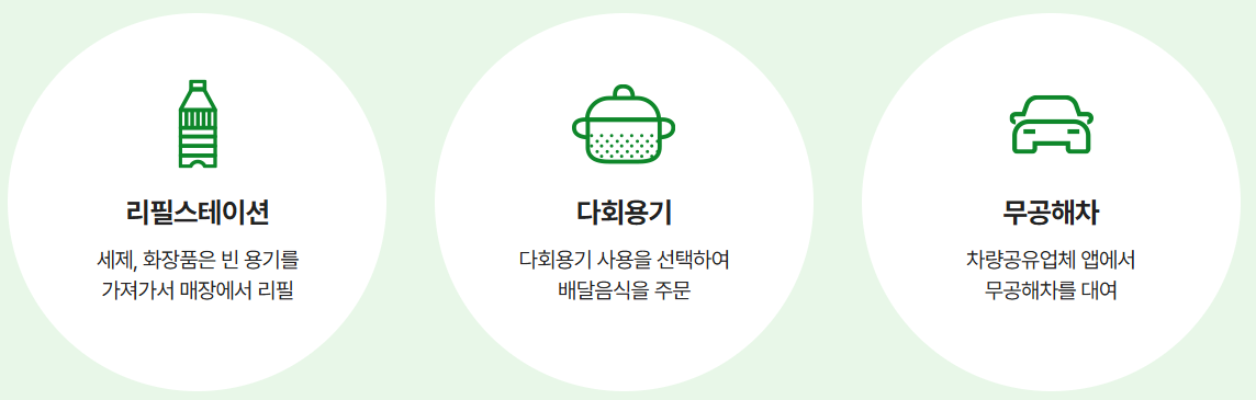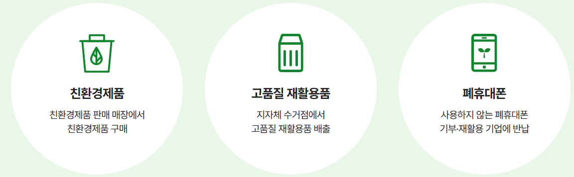 친환경제품 구매: 그린카드를 사용하거나, 참여매장에서 친환경제품을 구매하면 포인트가 적립됩니다.