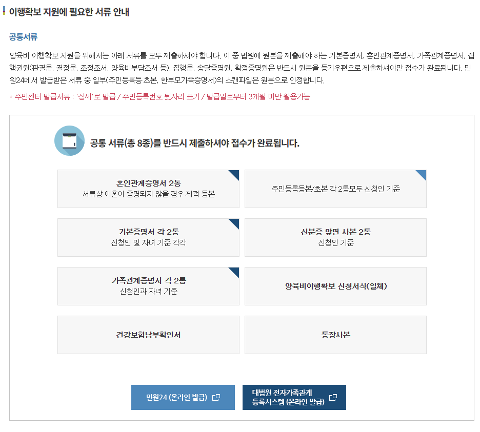양육비 선지급제 제출 서류