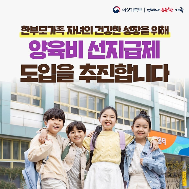 국가가 직접 나서서 아이의 권리와 한부모 가정의 안정을 지키는 양육비 선지급제, 앞으로도 많은 관심과 활용이 이어지길 바랍니다.