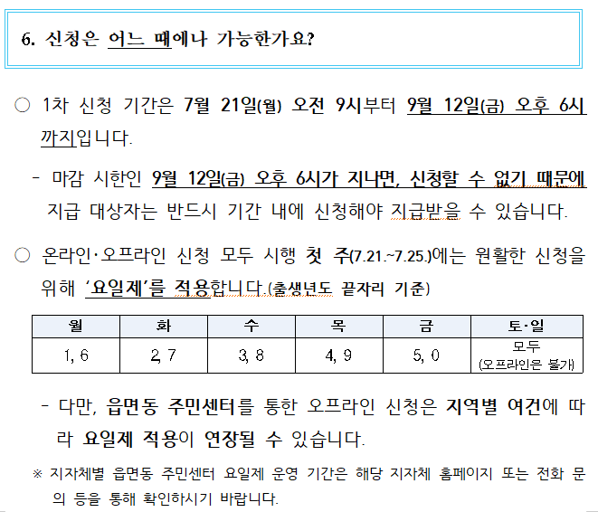 하지만 아무리 좋은 제도라도 신청하지 않으면 혜택을 누릴 수 없습니다. 이번 소비쿠폰 신청 기간은 7월 21일부터 9월 12일까지로 정해져 있으며, 이 기간 안에 온라인 또는 오프라인으로 반드시 신청을 완료해야 합니다.