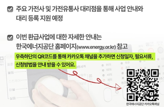 환급 신청은 한국에너지공단에서 운영하는 온라인 시스템을 통해 접수하며, 신청일자 및 방법 등은 카카오톡 채널 또는 공식 홈페이지에서 별도 공지될 예정입니다. QR코드를 통해 알림을 받을 수 있으니, 미리 채널을 추가해두는 것이 유용합니다.