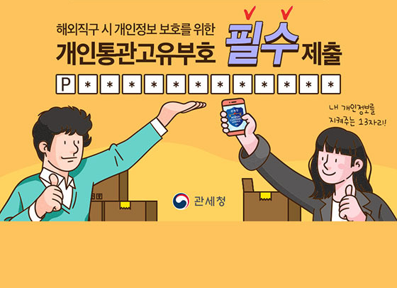 주민등록번호나 외국인등록번호를 대신하여 사용되며, 개인정보 유출을 방지하고 보다 안전한 통관 절차를 지원하기 위해 관세청에서 발급합니다.