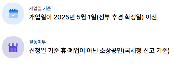 소상공인 부담경감 크레딧의 지원대상은 2024년 또는 2025년 연 매출액이 0원 초과 3억 원 이하인 소상공인입니다. 개인사업자와 법인사업자 모두 신청할 수 있으며, 2025년 5월 1일 이전에 개업한 사업체여야 합니다.